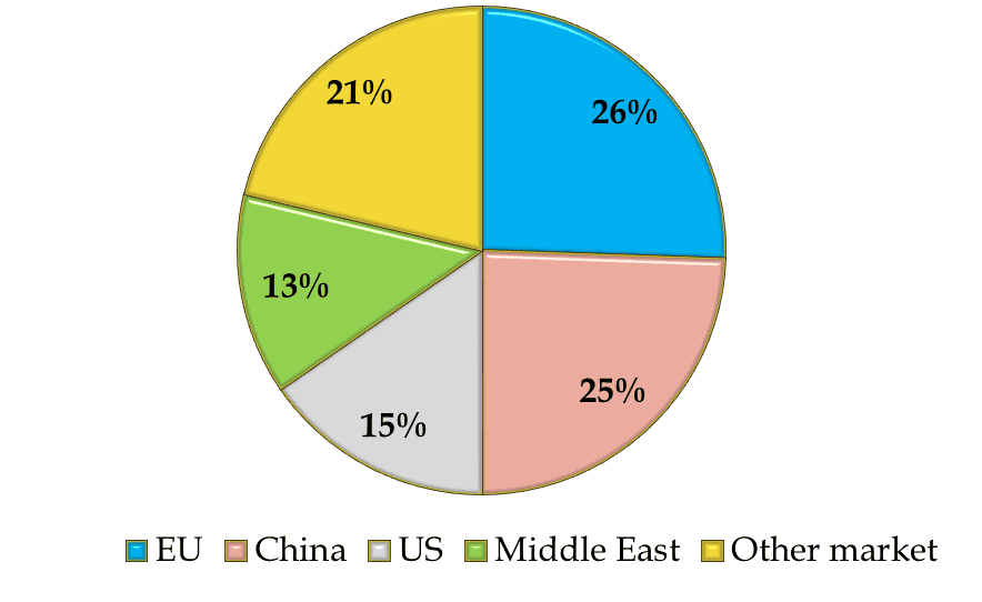 1. EU market: 88,000 tons 3. US market: 53,100 tons
